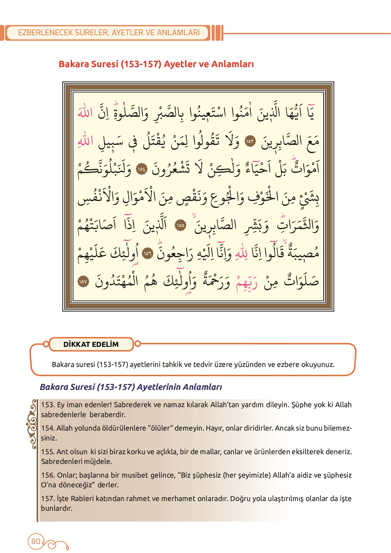 3. Ezberlenecek Sureler, Ayetler ve Anlamları - Bakara Suresi 153-157. Ayetler ve Anlamları