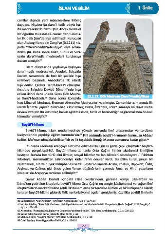42 Ali Yardım, “Anadolu Selçukluları ve Osmanlılar’da Daru’l-hadis”, TDV İslam Ansiklopedisi, C 8, s. 529-532.