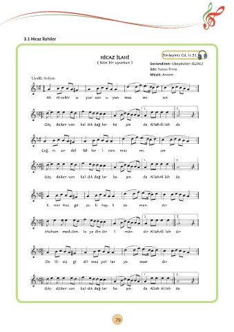 3.1 Hicaz İlahiler Dinleyiniz Cd. İz 31 Seslendiren: Ubeydullah SEZİKLİ Söz: Yunus Emre Müzik: Anoim 79