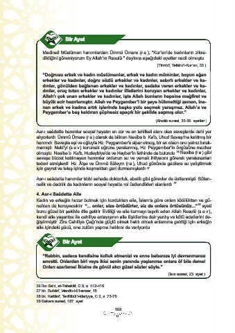 hanımdı. Savaşta eşi ve oğluyla Hz. Peygamber’e siper olmuş, bir an olsun onu yalnız bırak-