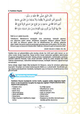 Hadisten Hayata başlığında verilen hadis, aşağıda verilen değerlerle ilişkili