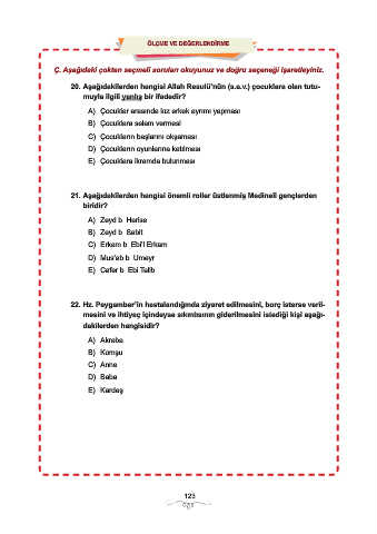 Ç. Aşağıdaki çoktan seçmeli soruları okuyunuz ve doğru seçeneği işaretleyiniz.