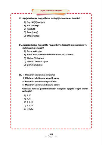 24. Aşağıdakilerden hangisi Hz. Peygamber’in kardeşlik uygulamasına ve-