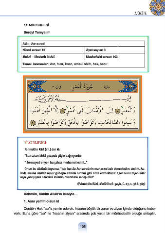 Temel kavramlar: Asr, husr, iman, amel-i sâlih, hak, sabır