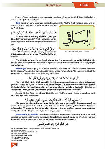“…O’nun zâtından başka her şey yok olacaktır. “el-Bâkî ; Bâki olan yalnız Allah’tır.”