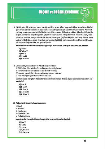 8. (I) Hilafetin Ali evladının hakkı olduğunu iddia eden Şiîler, gasp edildiğine inandıkları hilafeti